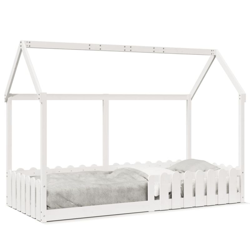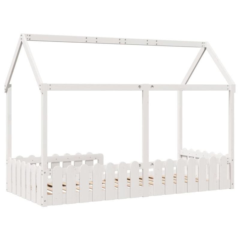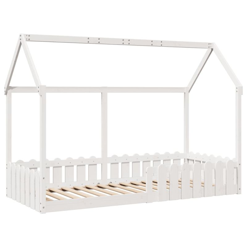 Рамка за детско легло къща, бяла, 90x200 см, борово дърво масив