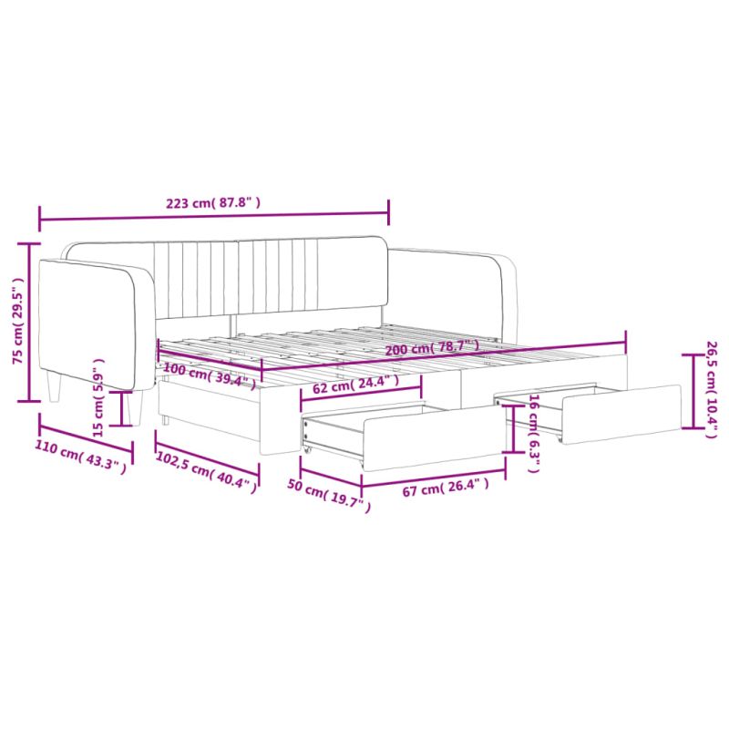 Канапе с изтеглящо легло и чекмеджета светлосив 100x200 см плат