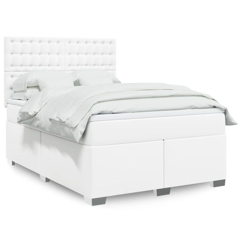 Боксспринг легло с матрак, бяло, 160x200 см, изкуствена кожа