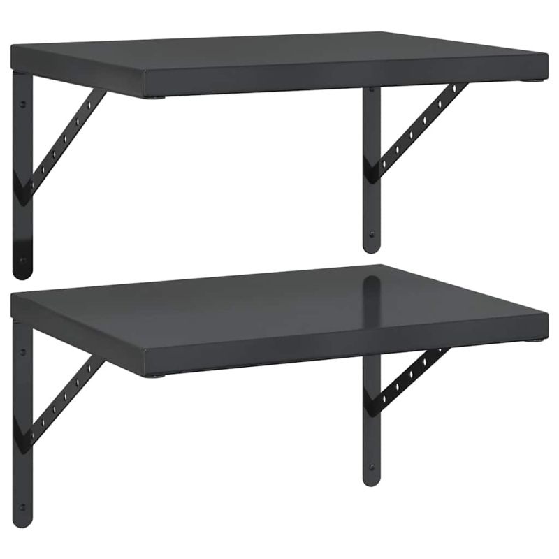 Стенни рафтове 2 бр 50x40 см черни неръждаема стомана
