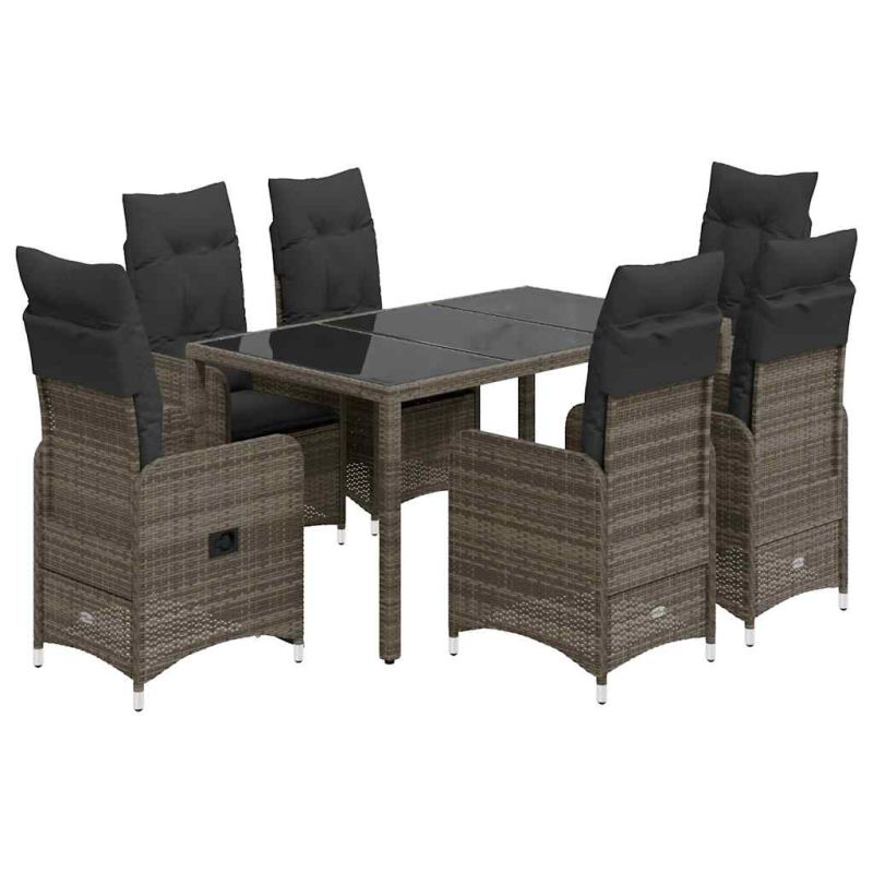 Градински бистро комплект с възглавници 5 части сив полиратан