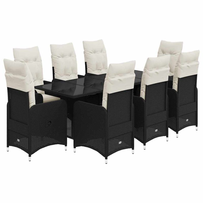 Градински бистро комплект с възглавници 9 части черен полиратан