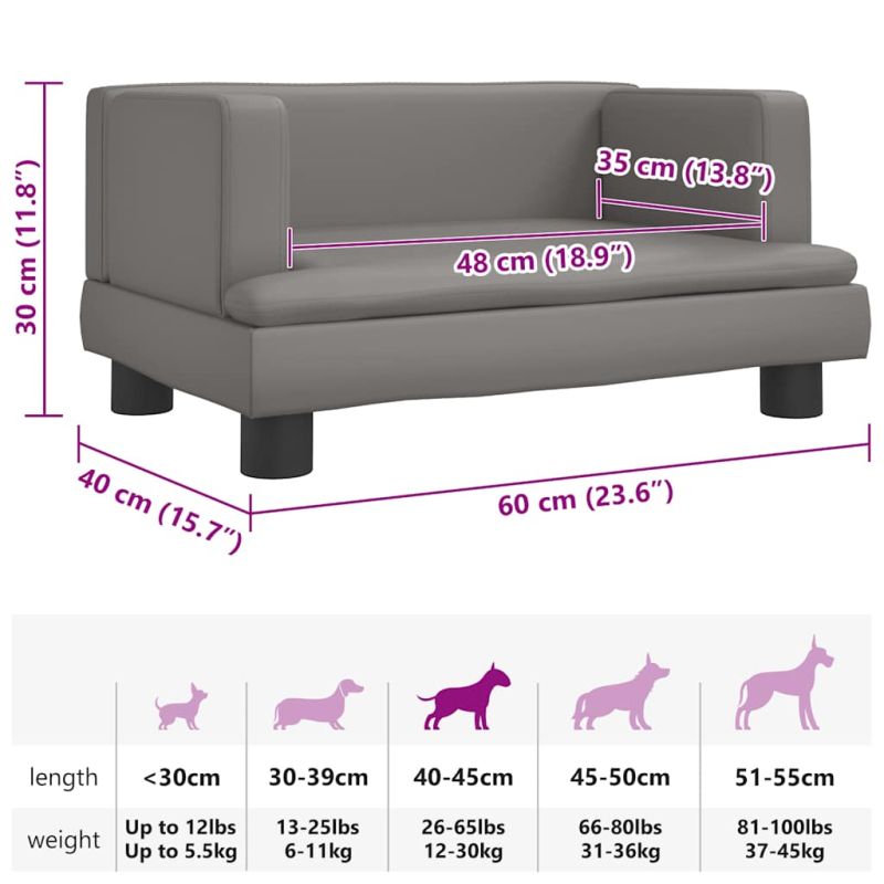 Кучешко легло, сиво, 60x40x30 см, изкуствена кожа