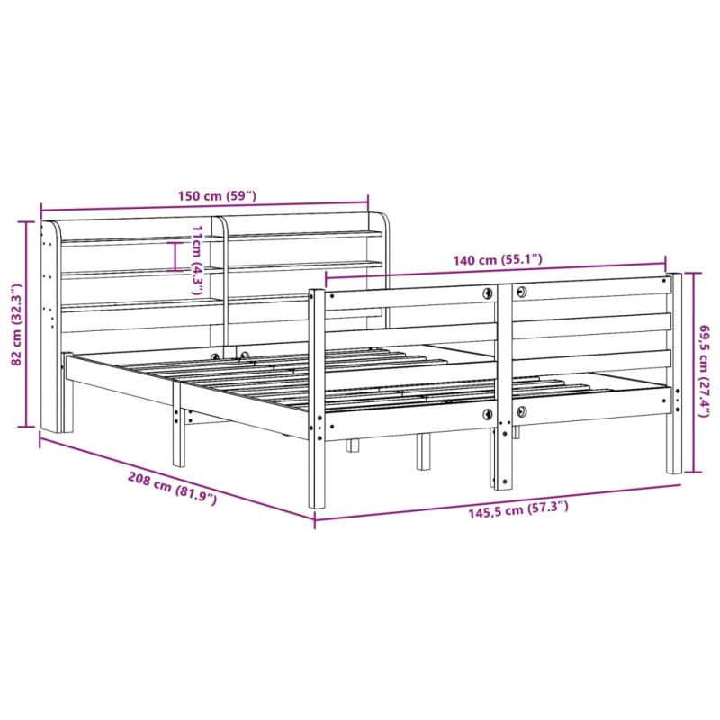 Осигурете си по-добър спокоен нощен сън с тази рамка за легло! Тя представлява приветливо допълнение към всяка спалня. Стабилна и дълготрайна рамка: Масивната борова дървесина е известна със своята здравина и издръжливост. Нейните прави зърна и отличителни възли допринасят за рустик чара ѝ.Решетъчна основа за оптимална опора: Рамката на леглото е оборудвана с решетъчна основа за опора и дишане на вашия матрак.Достатъчно място за съхранение: Тази елегантна табла разполага с три удобни рафта, предлагащи достатъчно място за съхранение, за да държите всичките си основни вещи през нощта леснодостъпни.Свободностояща табла: Свободностоящата табла предлага безпроблемно решение за лесно поставяне и препозициониране без необходимост от монтаж на стена. Добре е да се знае:Към това легло не е включен матрак. Ние предлагаме разнообразна селекция от матраци. Можете да проверите нашия магазин за подходящ матрак.