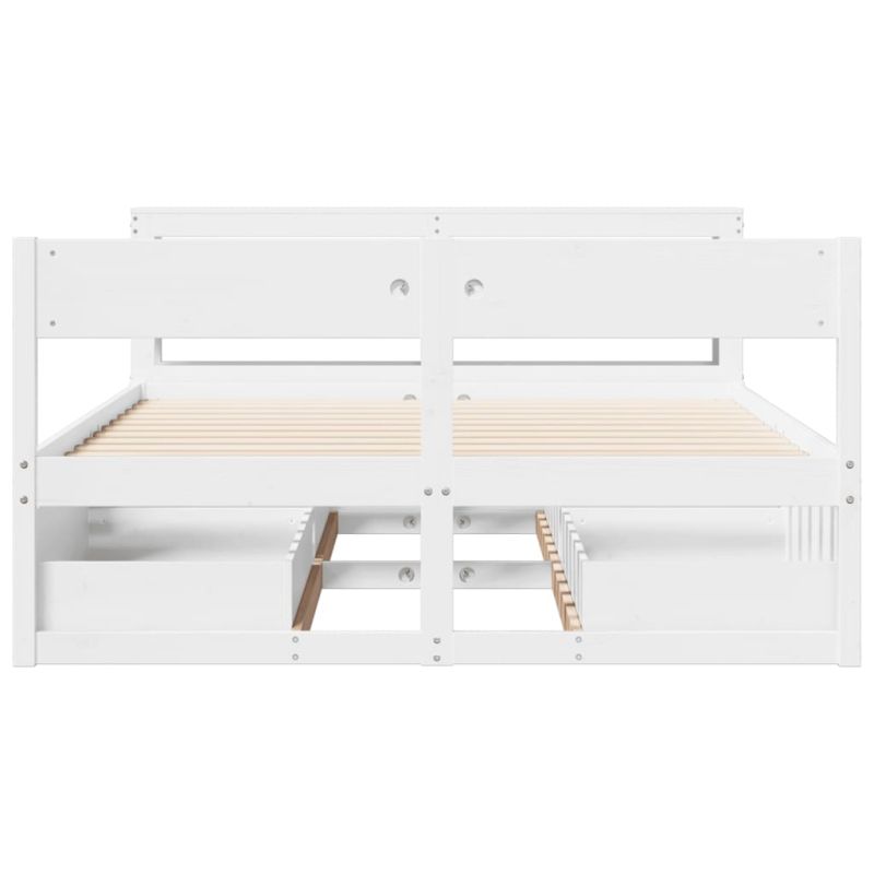Осигурете си по-добър спокоен нощен сън с тази рамка за легло! Тя представлява приветливо допълнение към всяка спалня. Стабилна и дълготрайна рамка: Масивната борова дървесина е известна със своята здравина и издръжливост. Нейните прави зърна и отличителни възли допринасят за рустик чара ѝ.Решетъчна основа за оптимална опора: Рамката на леглото е оборудвана с решетъчна основа за опора и дишане на вашия матрак.Използвайте пълноценно пространството: Тази рамка за легло разполага с четири чекмеджета отдолу, осигуряващи съхранение на предмети като допълнително спално бельо, сезонни дрехи и играчки.Достатъчно място за съхранение: Тази елегантна табла на леглото разполага с два удобни рафта, предлагащи достатъчно място за съхранение, за да държите всичките си основни вещи през нощта леснодостъпни.Свободностояща табла: Свободностоящата табла предлага безпроблемно решение за лесно поставяне и препозициониране без необходимост от монтаж на стена. Добре е да се знае:Към това легло не е включен матрак. Ние предлагаме разнообразна селекция от матраци. Можете да проверите нашия магазин за подходящ матрак.