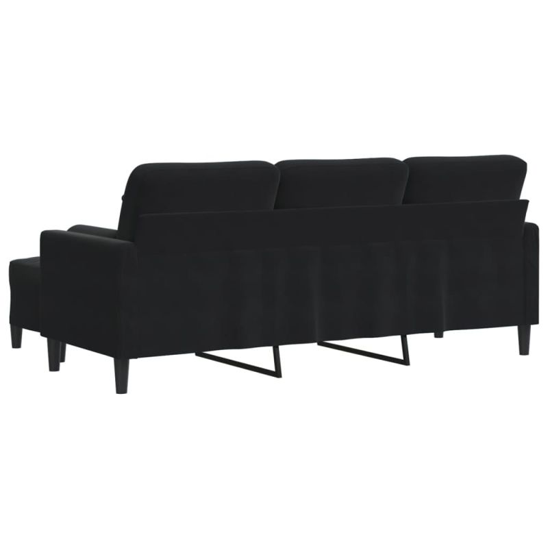 3-местен диван с табуретка, черно, 180 см, кадифе