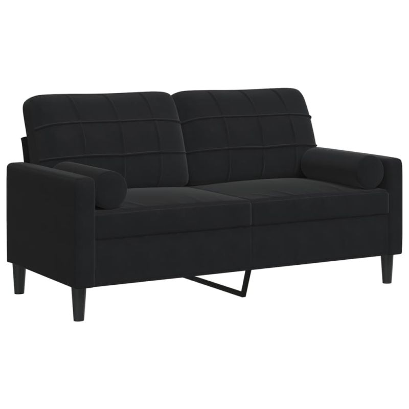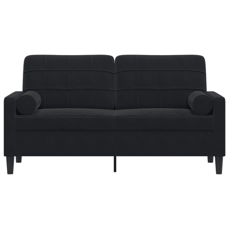 2-местен диван с декоративни възглавници черен 140 см кадифе