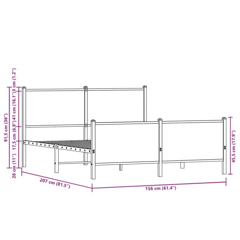 Метална рамка за легло, без матрак, опушен дъб, 150x200 см