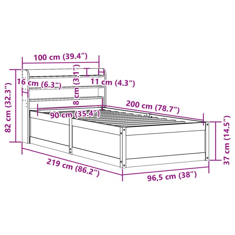 Осигурете си по-добър спокоен нощен сън с тази рамка за легло! Тя представлява приветливо допълнение към всяка спалня. Стабилна и дълготрайна рамка: Масивната борова дървесина е известна със своята здравина и издръжливост. Нейните прави зърна и отличителни възли допринасят за рустик чара ѝ.Решетъчна основа за оптимална опора: Рамката на леглото е оборудвана с решетъчна основа за опора и дишане на вашия матрак.Достатъчно място за съхранение: Тази елегантна табла за легло разполага с три удобни рафта, предлагащи достатъчно място за съхранение, за да държите всичките си основни вещи през нощта леснодостъпни.Свободностояща табла: Свободностоящата табла предлага безпроблемно решение за лесно поставяне и препозициониране без необходимост от монтаж на стена. Добре е да се знае:Към това легло не е включен матрак. Ние предлагаме разнообразна селекция от матраци. Можете да проверите нашия магазин за подходящ матрак.
