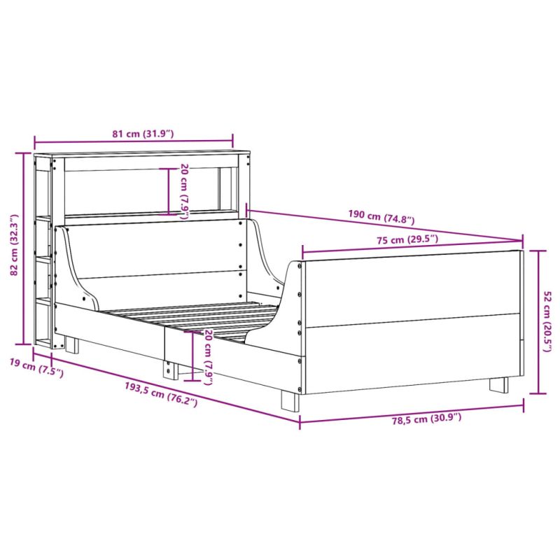 Рамка за легло без матрак, 75x190 см, масивна чамова дървесина