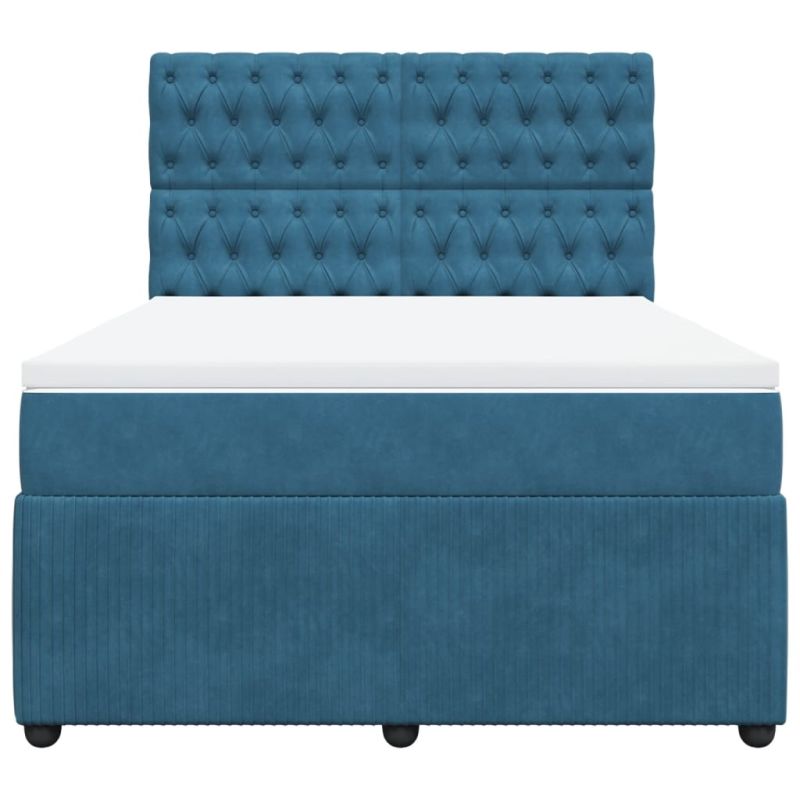 Боксспринг легло с матрак, тъмносиньо, 140x200 см, кадифе