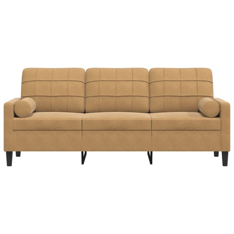 3-местен диван с декоративни възглавници кафяв 180 см кадифе