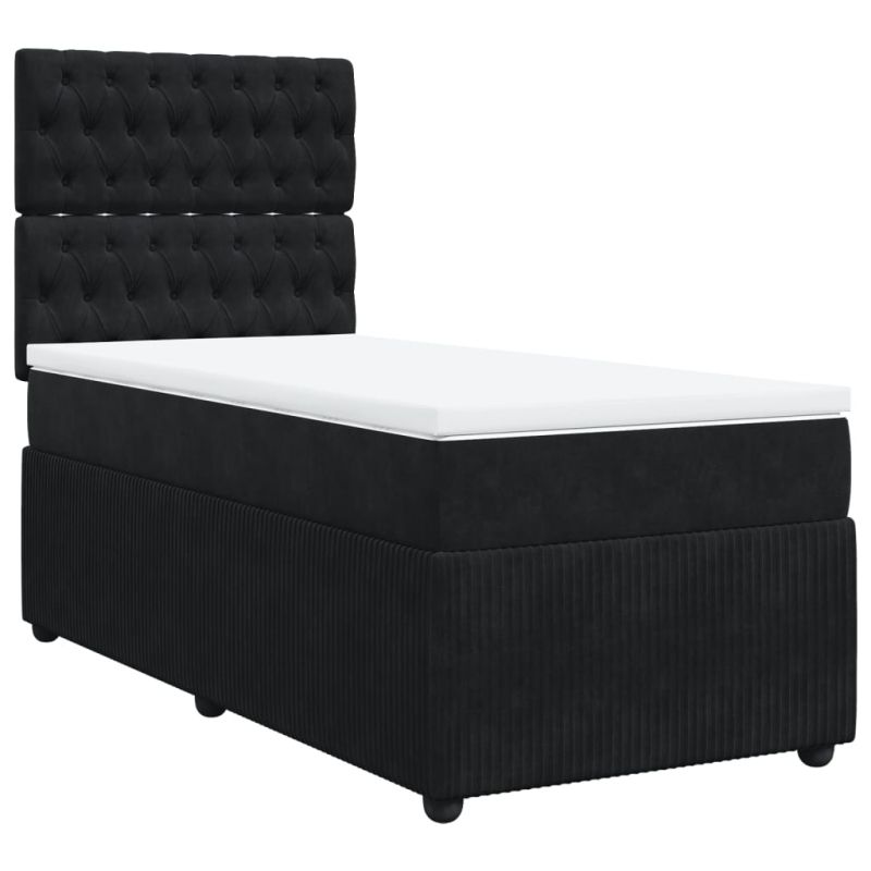 Боксспринг легло с матрак, черно, 90x200 см, кадифе