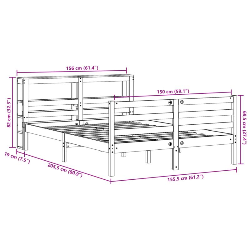 Рамка за легло без матрак, бял, 150x200 см, бор масив