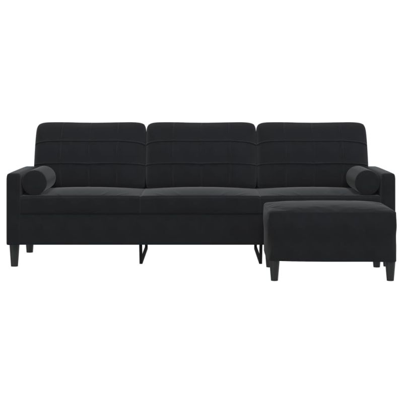 3-местен диван, с табуретка, черен, 210 см, кадифе