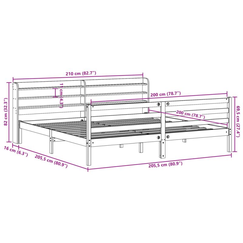 Насладете се на добър нощен сън с тази дървена рамка за легло! Тя ще бъде практично и декоративно допълнение към вашия интериор. Масивна борова дървесина: Масивната борова дървесина е красив естествен материал. Боровата дървесина е с продълговати шарки, а чеповете придават на материала характерния му рустик вид.Практични ламели: Ламелите осигуряват добро разпределение на тежестта, осигурявайки на вашия матрак така необходимата опора и дишане.Достатъчно място за съхранение: Тази елегантна табла на леглото разполага с два удобни рафта, предлагащи достатъчно място за съхранение, за да държите всичките си основни вещи през нощта леснодостъпни.Свободностояща табла: Свободностоящата табла предлага безпроблемно решение за лесно поставяне и препозициониране без необходимост от монтаж на стена. Добре е да се знае: Към това легло не е включен матрак. Ние предлагаме разнообразна селекция от матраци. Можете да проверите нашия магазин за подходящ матрак.