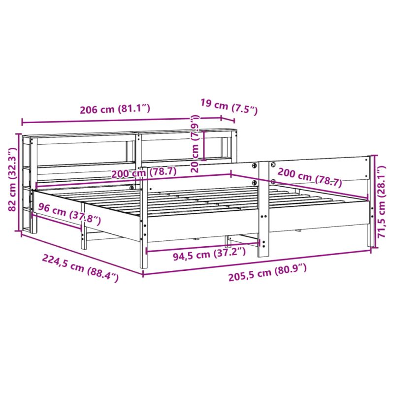 Осигурете си по-добър спокоен нощен сън с тази рамка за легло! Тя представлява приветливо допълнение към всяка спалня. Стабилна и дълготрайна рамка: Масивната борова дървесина е известна със своята здравина и издръжливост. Нейните прави зърна и отличителни възли допринасят за рустик чара ѝ.Решетъчна основа за оптимална опора: Рамката на леглото е оборудвана с решетъчна основа за опора и дишане на вашия матрак.Гъвкава табла: Тази рамка за легло се предлага с табла, която осигурява отлична опора за гърба, когато седите в леглото, за да четете или гледате телевизия, като същевременно служи и като декоративен елемент.Достатъчно място за съхранение: Тази елегантна табла разполага с два удобни рафта, предлагащи достатъчно място за съхранение, за да държите всичките си основни вещи през нощта леснодостъпни. Добре е да се знае:Към това легло не е включен матрак. Ние предлагаме разнообразна селекция от матраци. Можете да проверите нашия магазин за подходящ матрак.