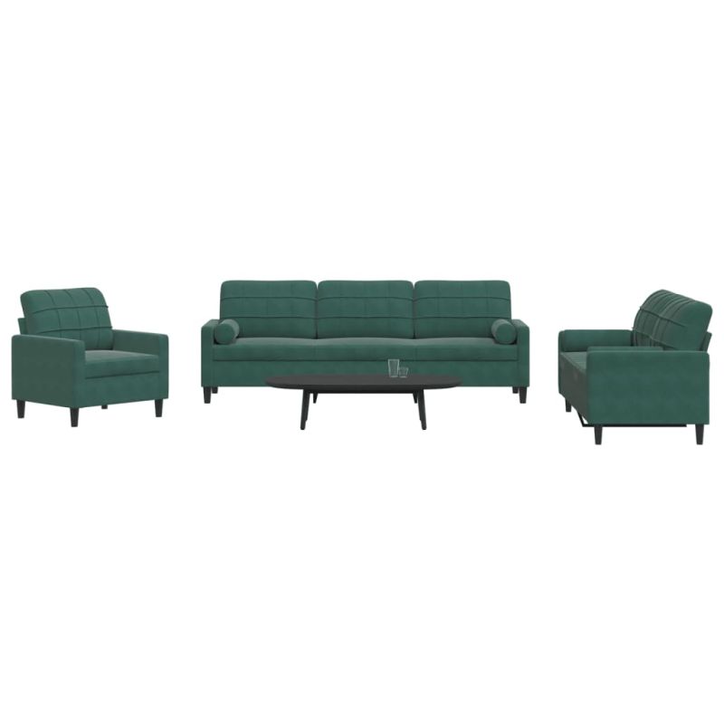 Мека мебел от 3части с възглавници и болстери тъмнозелен кадифе