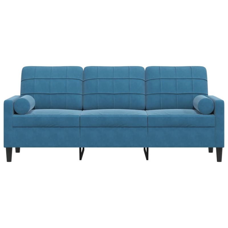 3-местен диван с декоративни възглавници син 180 см кадифе
