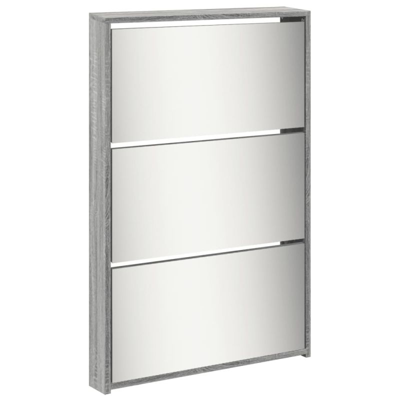 Шкаф за обувки с огледало, 5 нива, сив сонома, 63x17x169,5 см