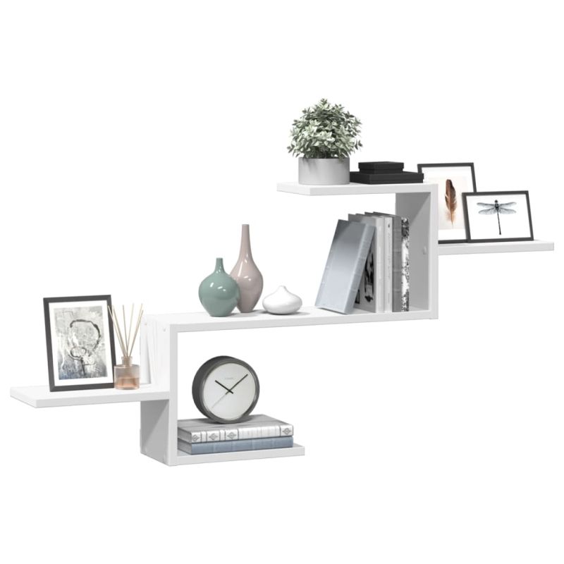Стенен рафт, бял, 104x15x49 см, инженерно дърво