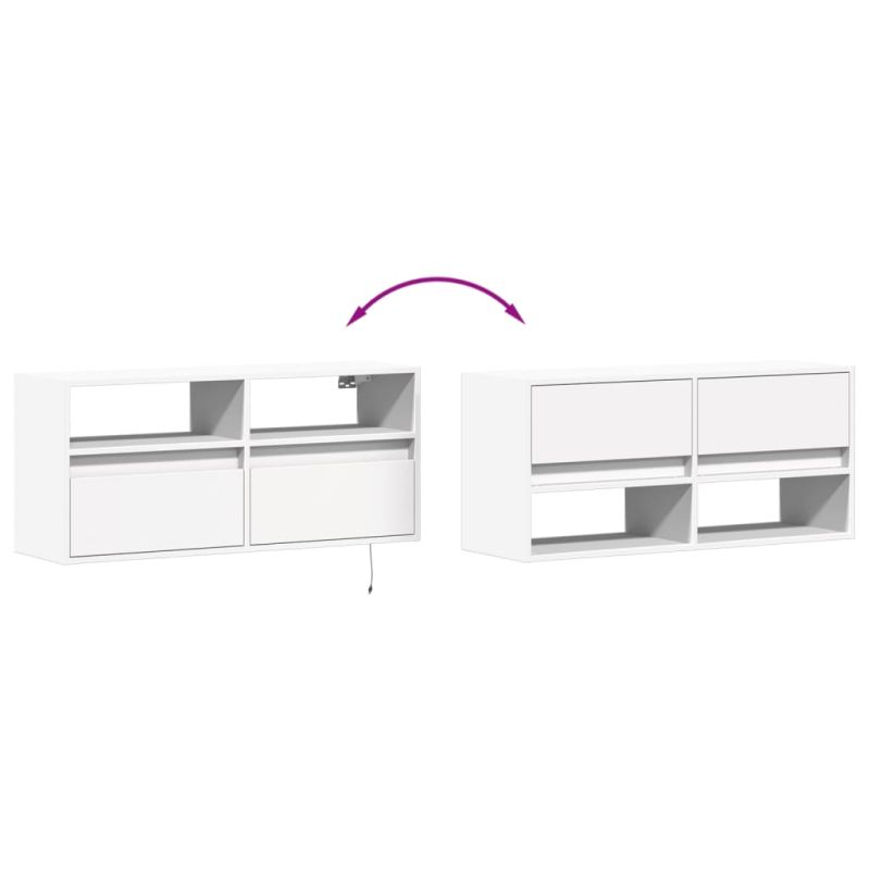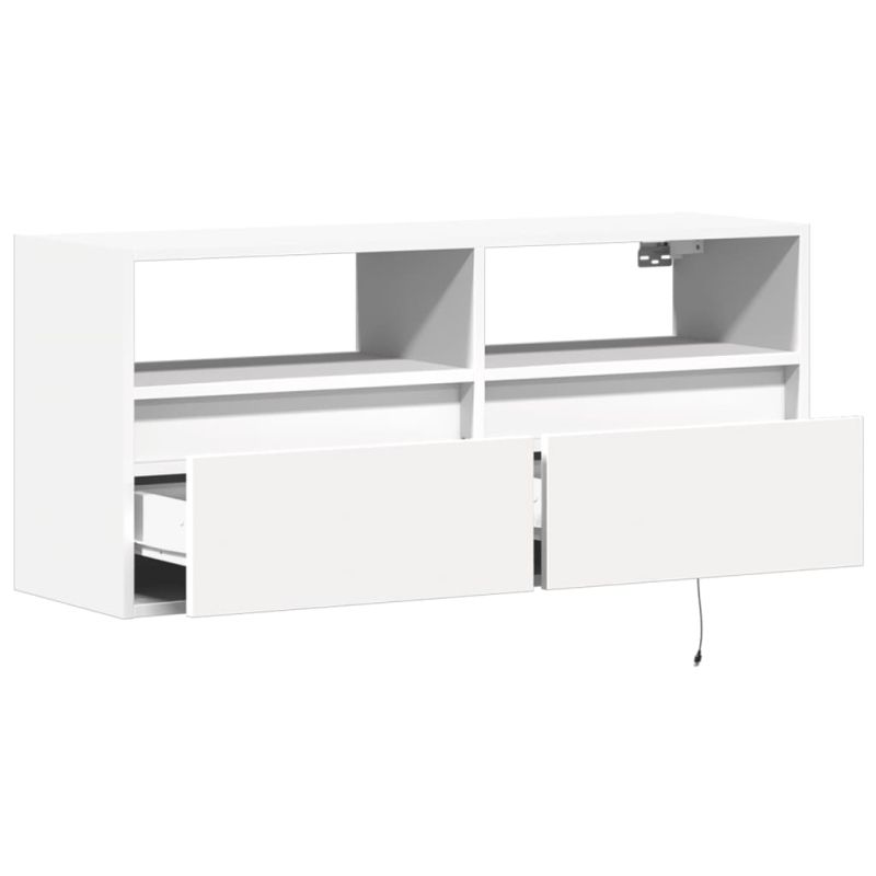 Стенен ТВ шкаф с LED осветление, бял, 100x31x45 см
