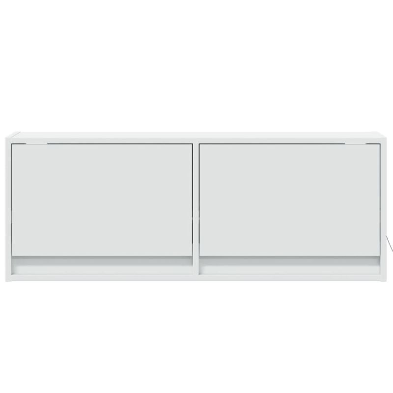 Стенен ТВ шкаф с LED осветление, бял, 100x31x38 см