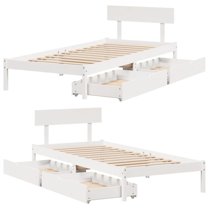 Рамка за легло без матрак, бял, 90x190 см, борово дърво масив