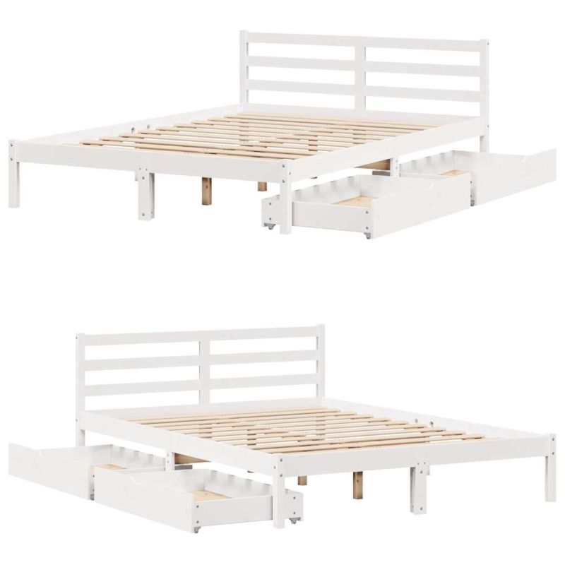 Рамка за легло без матрак, бял, 140x200 см, бор масив