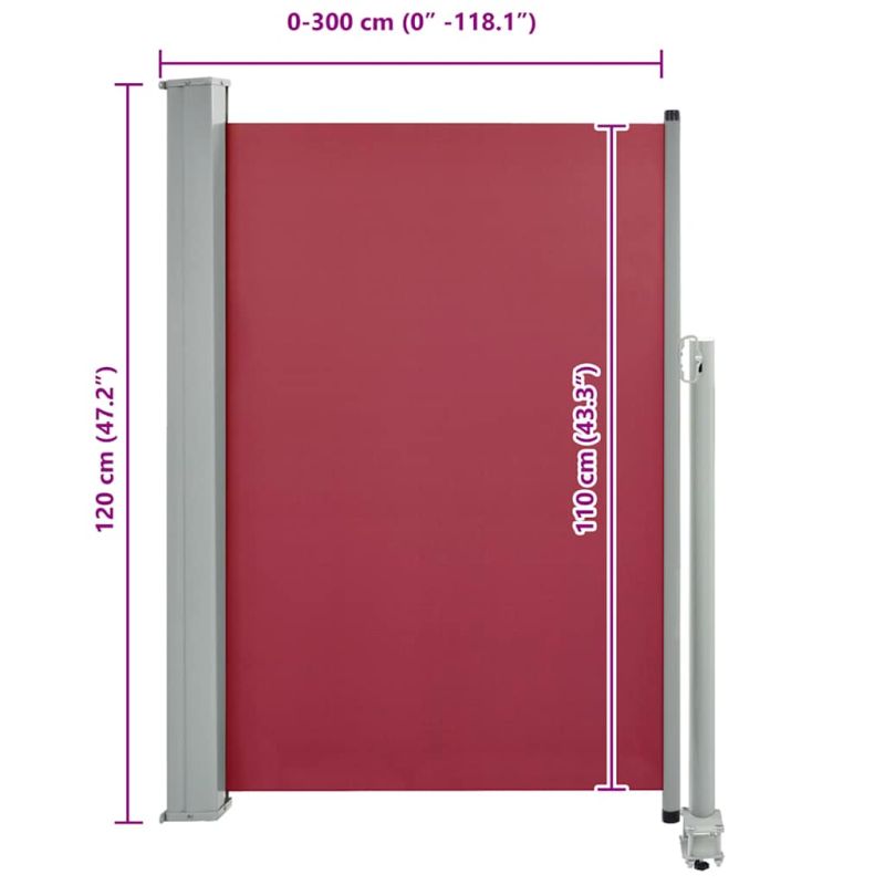 Прибираща се дворна странична тента, 120x300 см, червена