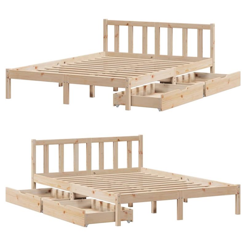 Осигурете си по-добър спокоен нощен сън с тази рамка за легло! Тя представлява приветливо допълнение към всяка спалня. Стабилна и дълготрайна рамка: Масивната борова дървесина е известна със своята здравина и издръжливост. Нейните прави зърна и отличителни възли допринасят за рустик чара ѝ.Решетъчна основа за оптимална опора: Рамката на леглото е оборудвана с решетъчна основа за опора и дишане на вашия матрак.Използвайте пълноценно пространството: Тази рамка за легло разполага с две чекмеджета отдолу, осигуряващи съхранение на предмети като допълнително спално бельо, сезонни дрехи и играчки.Маневреност без усилие: Това чекмедже за съхранение под леглото разполага с четири колелца, осигуряващи плавна и лесна маневреност за плъзгане и изваждане под леглото ви. Добре е да се знае:Към това легло не е включен матрак. Ние предлагаме разнообразна селекция от матраци. Можете да проверите нашия магазин за подходящ матрак.