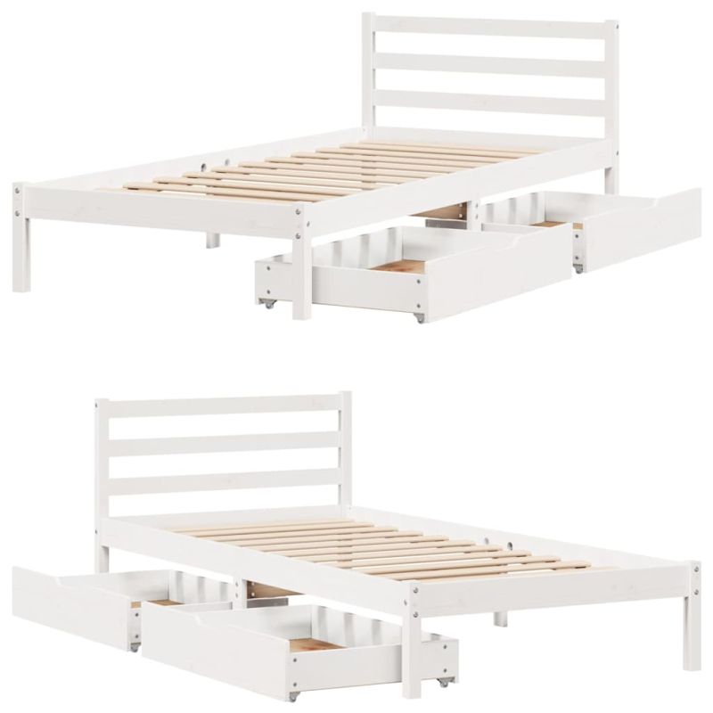 Рамка за легло без матрак, бял, 90x200 см, бор масив