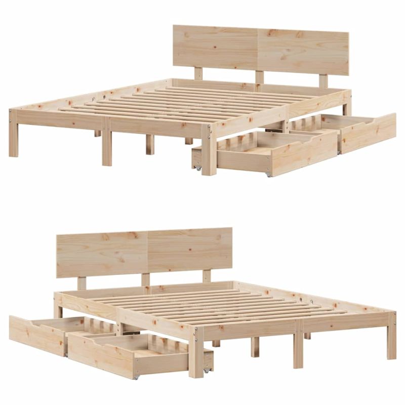 Осигурете си по-добър спокоен нощен сън с тази рамка за легло! Тя представлява приветливо допълнение към всяка спалня. Стабилна и дълготрайна рамка: Масивната борова дървесина е известна със своята здравина и издръжливост. Нейните прави зърна и отличителни възли допринасят за рустик чара ѝ.Решетъчна основа за оптимална опора: Рамката на леглото е оборудвана с решетъчна основа за опора и дишане на вашия матрак.Допълнително пространство за съхранение: Тази основа за легло разполага с две чекмеджета отдолу, които осигуряват място за съхранение на вещи като допълнително спално бельо, сезонни дрехи и играчки.Гъвкава табла: Това легло се предлага с табла, която осигурява отлична опора за гърба, когато седите в леглото, за да четете или гледате телевизия, като същевременно служи и като декоративен елемент.Маневреност без усилие: Това чекмедже за съхранение под леглото разполага с четири колелца, осигуряващи плавна и лесна маневреност за плъзгане и изваждане под леглото ви. Добре е да се знае:Към това легло не е включен матрак. Ние предлагаме разнообразна селекция от матраци. Можете да проверите нашия магазин за подходящ матрак.