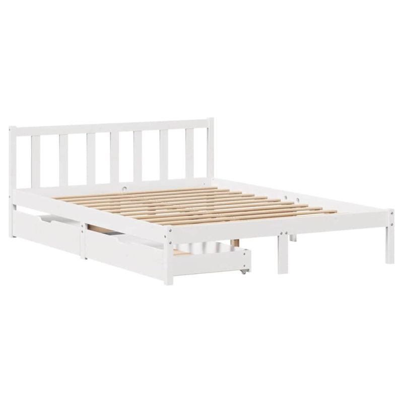 Рамка за легло без матрак, бял, 140x190 см, бор масив