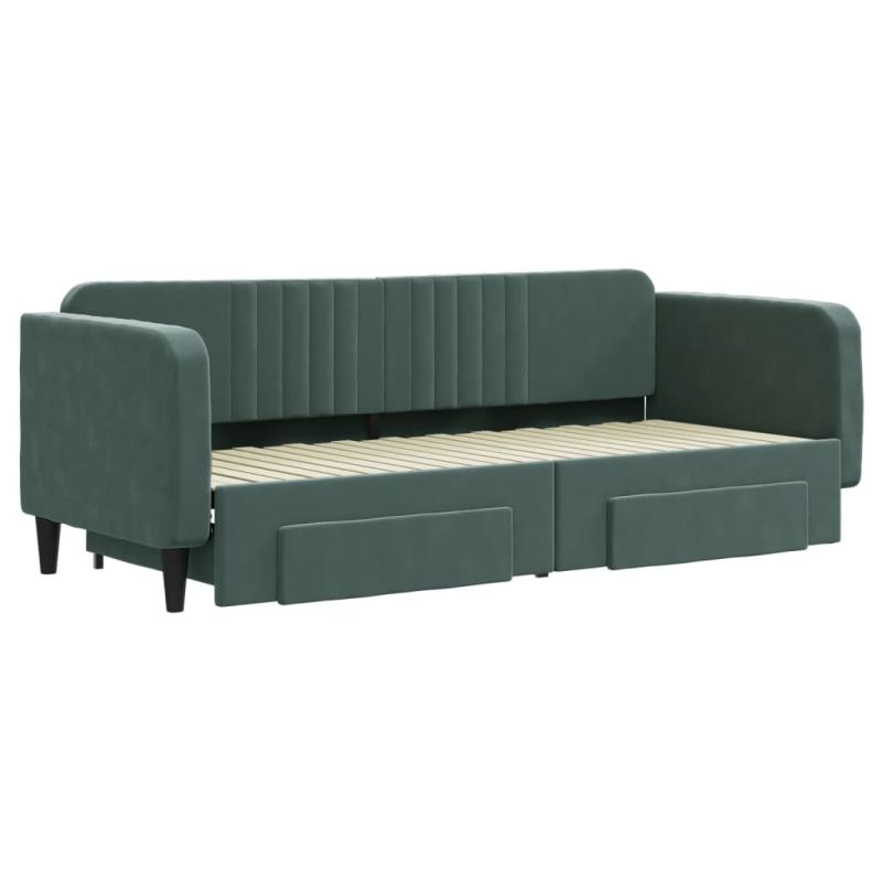 Канапе изтеглящо легло и чекмеджета тъмнозелен 80x200 см кадифе