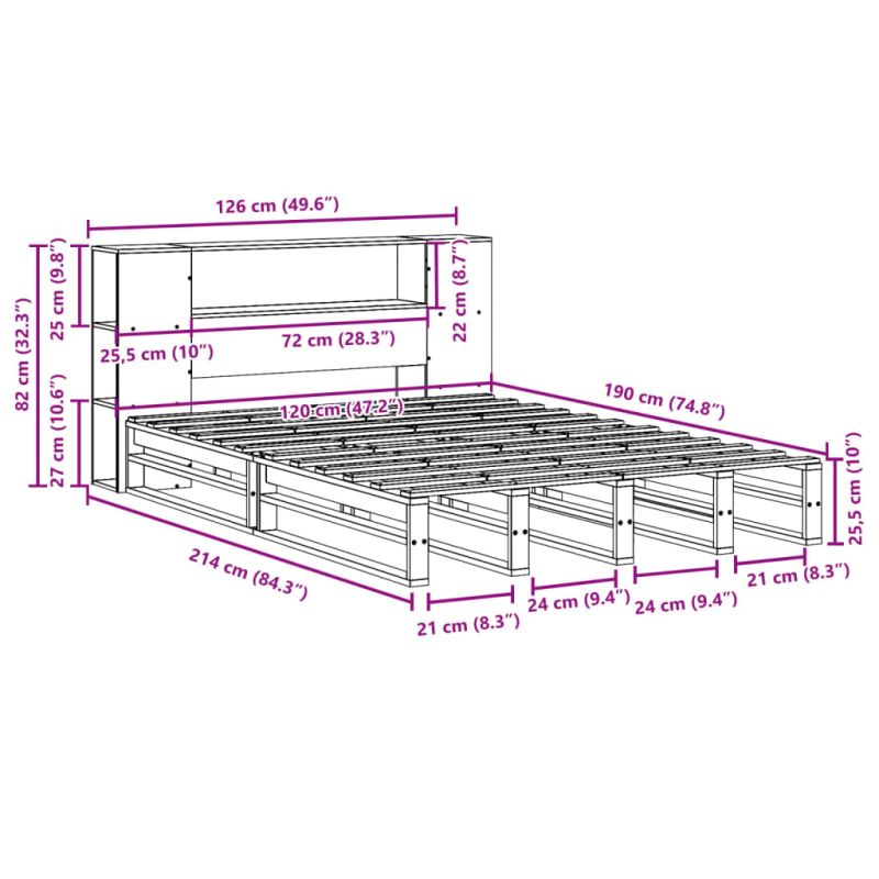 - Купете Легло с етажерка за книги, без матрак, 120x190 см, дърво масив или друг продукт от нашата промоционална секция за да получите 3% отстъпка.