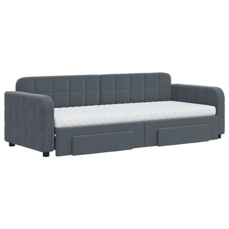 Канапе изтеглящо легло и чекмеджета тъмносиво 80x200 см кадифе