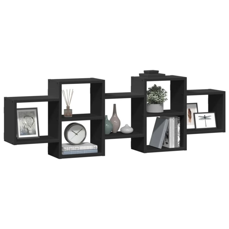 Стенен рафт, черен, 129x18x42 см, инженерно дърво