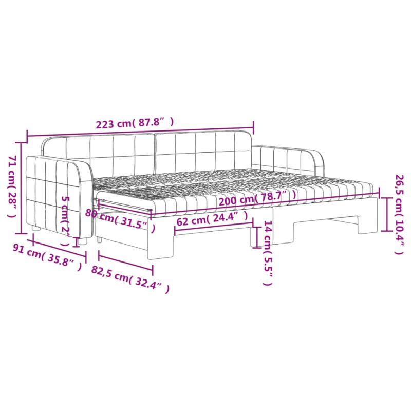 Това канапе 2-в-1 с изтеглящо разтегателно легло, което служи едновременно като диван и легло, е практично и атрактивно допълнение към вашата всекидневна или спалня. Функционална мебел: Канапето функционира като диван през деня и лесно се превръща в двойно легло през нощта чрез издърпване на механизма за изтеглящо разтегателно легло, осигурявайки удобно решение за настаняване на гости и увеличаване на пространството.Комфортен матрак от дунапрен: Тази кушетка се доставя с два матрака от дунапрен за максимална опора и оптимален комфорт.Меко канапе и солидна конструкция: Това канапе има здрава рамка от дърво и метал и е тапицирано с меко и комфортно кадифе.