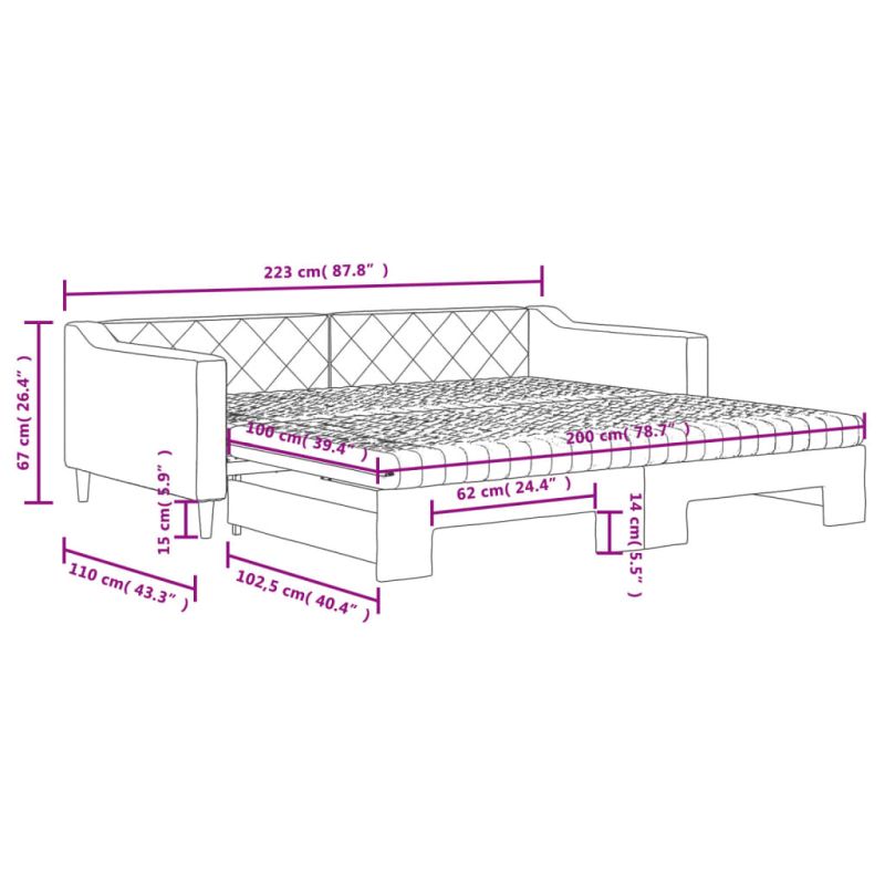 Канапе с изтеглящо легло и матрак тъмносиво 100x200 см плат