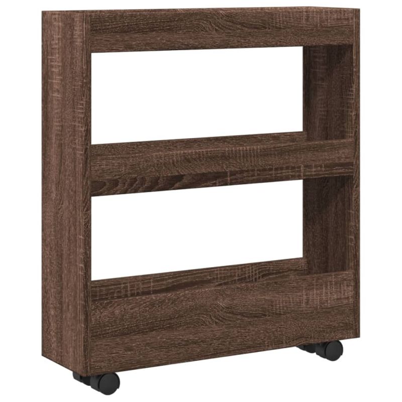 Тясна количка за съхранение 3 нива кафяв дъб инженерно дърво