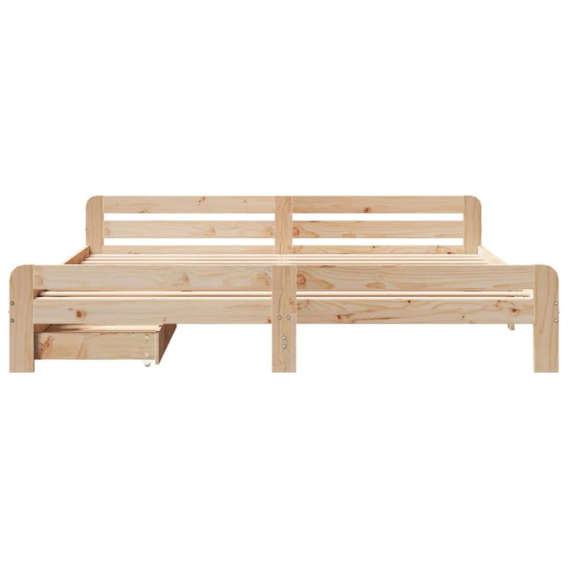 Осигурете си по-добър спокоен нощен сън с тази рамка за легло! Тя представлява приветливо допълнение към всяка спалня. Стабилна и дълготрайна рамка: Масивната борова дървесина е известна със своята здравина и издръжливост. Нейните прави зърна и отличителни възли допринасят за рустик чара ѝ.Решетъчна основа за оптимална опора: Рамката на леглото е оборудвана с решетъчна основа за опора и дишане на вашия матрак.Използвайте пълноценно пространството: Тази основа за легло разполага с две чекмеджета отдолу, осигуряващи съхранение на предмети като допълнително спално бельо, сезонни дрехи и играчки.Гъвкава табла: Тази рамка за легло се предлага с табла, която осигурява отлична опора за гърба, когато седите в леглото, за да четете или гледате телевизия, като същевременно служи и като декоративен елемент.Маневреност без усилие: Това чекмедже за съхранение под леглото разполага с четири колелца, осигуряващи плавна и лесна маневреност за плъзгане и изваждане под леглото ви. Добре е да се знае:Към това легло не е включен матрак. Ние предлагаме разнообразна селекция от матраци. Можете да проверите нашия магазин за подходящ матрак.