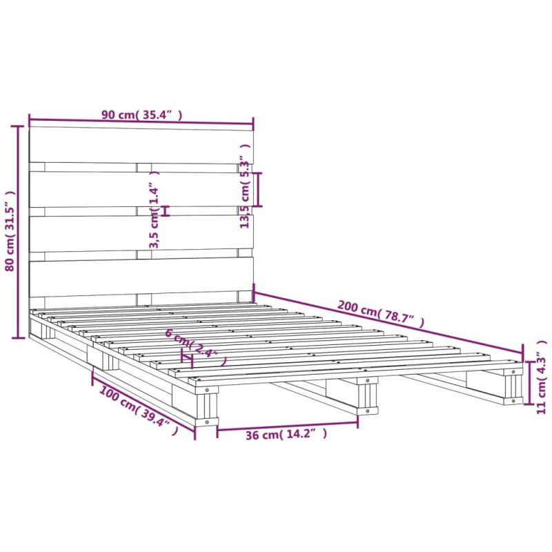 Рамка за легло без матрак, 90x200 см, масивна чамова дървесина