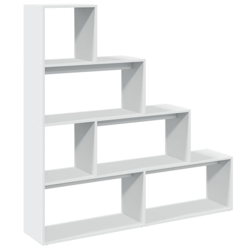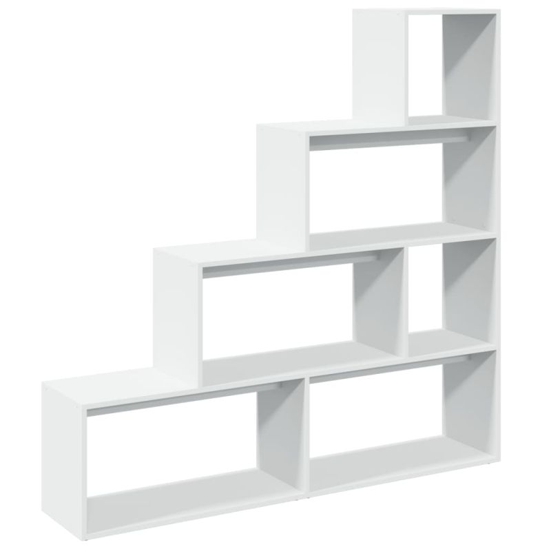 Разделител за стая / библиотека, бял, 4 нива, 143,5x29x143,5 см