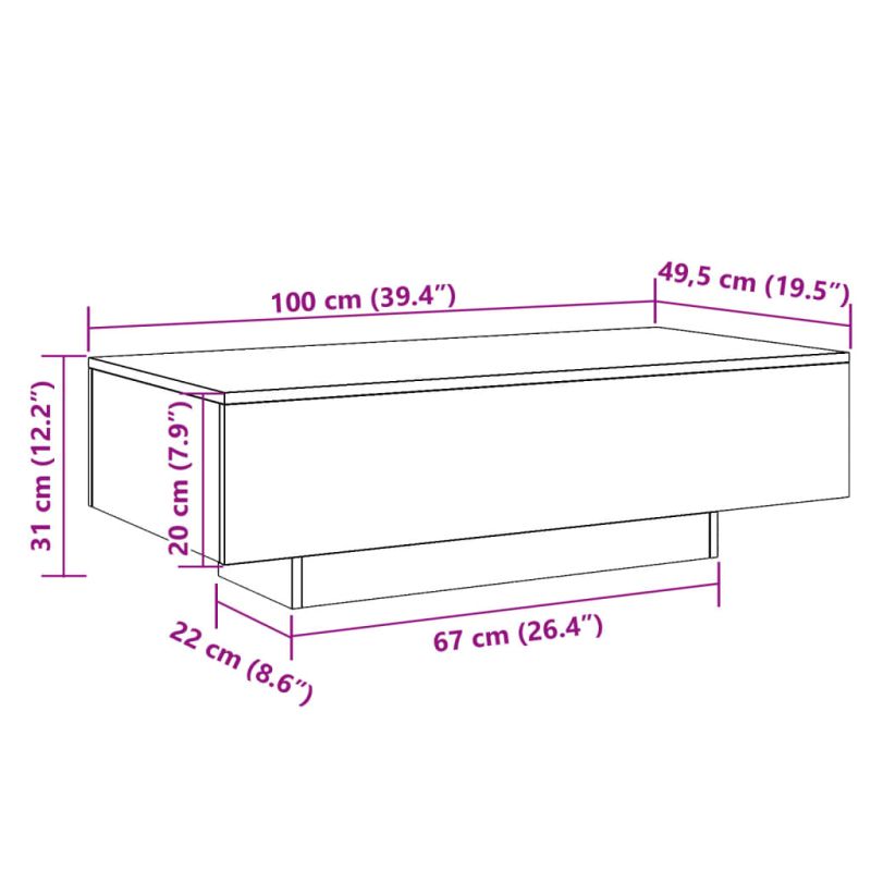 Кафе маса, дъб артизан, 100x49,5x31 см, инженерно дърво