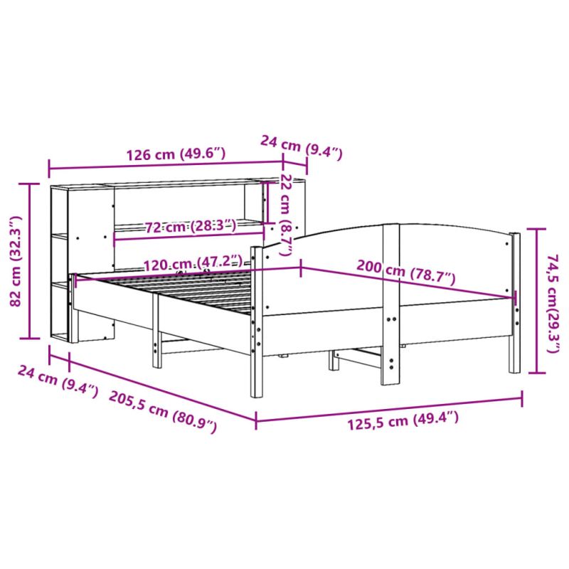 Легло с етажерка за книги, без матрак, 120x200 см, бор масив