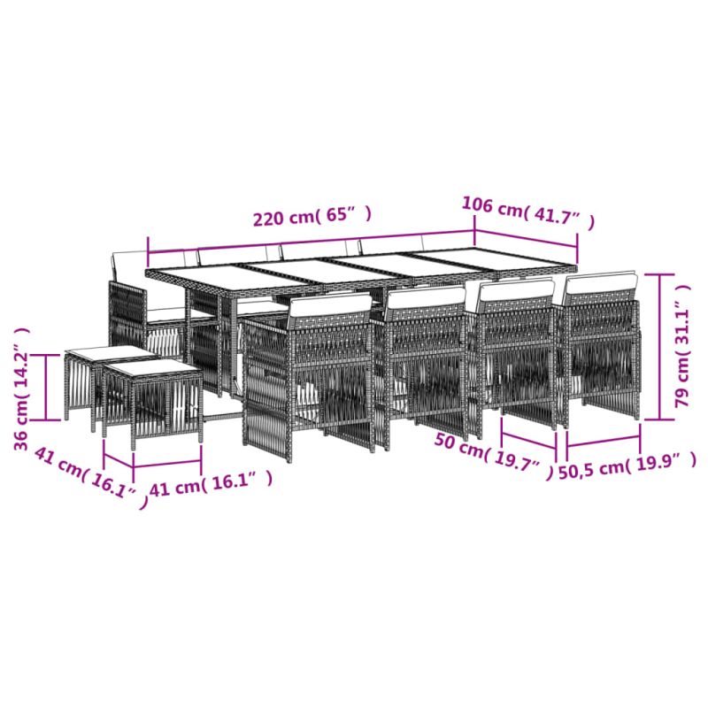 Външен трапезен комплект 13 части с възглавници черен полиратан