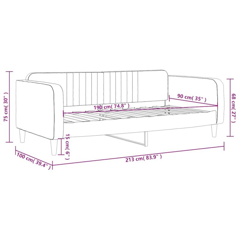 Дневно легло без матрак, тъмносиво, 90x190 см, кадифе