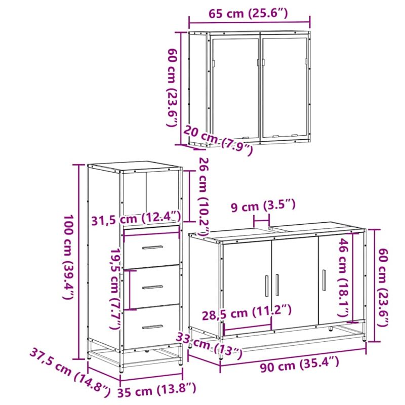 Комплект мебели за баня от 3 части сив сонома инженерно дърво