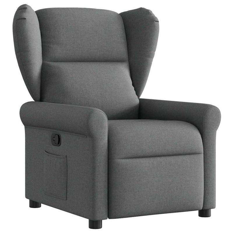 Облегнете се и се отпуснете в този изключително комфортен наклоняем стол! Функция за ръчно накланяне: Този накланящ се стол има дръжка от дясната страна. Можете ръчно да настроите поставката за крака и облегалката до произволна позиция според вашето удобство с просто издърпване на дръжката. Тази функция позволява максимален наклон от 135 градуса. Освен това облегалката може бързо да се върне на първоначалното си място с лесно издърпване на дръжката.Удобно седене: Дебело подплатената седалка, облегалката и широките подлакътници, покрити с текстил, осигуряват уютно и топло усещане, което ви кара да се чувствате като в прегръдка, докато седите. Тъканта се отличава със семпъл и изчистен вид и е дишаща и издръжлива.Удобен страничен джоб: Този фотьойл има страничен джоб, за да държите основните си вещи леснодостъпни.Здрава и стабилна рамка: Рамката, изработена от дърво и метал, осигурява здрава структура и стабилност. Този накланящ се фотьойл е удобен и издръжлив.
